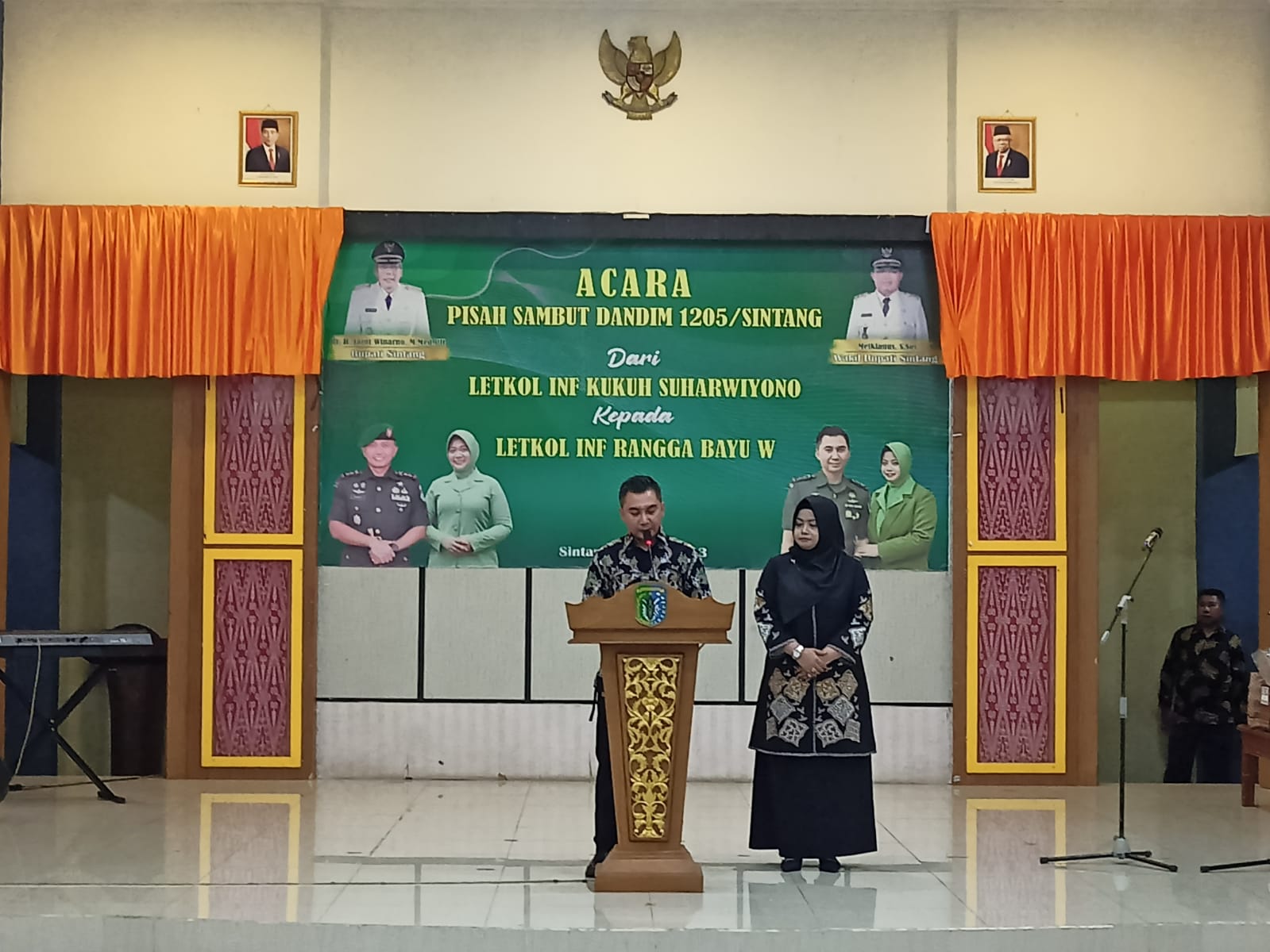 Pemerintah Kabupaten Sintang menggelar acara Pisah Sambut Komandan Kodim (Dandim) 1205/Sintang dari Letkol Inf Kukuh Suharwiyono digantikan Letkol Inf Rangga Bayu Widiarta. Acara pisah sambut digelar di Pendopo Rumah Jabatan Bupati Sintang, pada hari Sabtu tanggal 15 Juli 2023. Dandim sebelumnya Letkol Inf Kukuh Suharwiyono mengatakan bahwa dirinya telah bertugas sebagai Komandan Kodim 1205/Sintang selama satu tahun sembilan bulan.