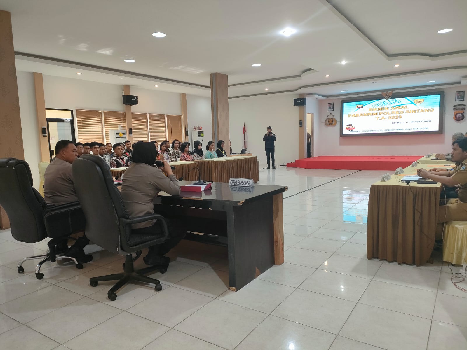 Kegiatan pemeriksaan administrasi awal penerimaan Taruna Akpol, Bintara, dan Tamtama Polri Tahun 2023 Kabupaten Sintang dilaksanakan pada hari Senin dan Selasa tanggal 17 s/d 18 April 2023 di Gedung Balai Kemitraan Polisi dan Masyarakat (BKPM) Polres Sintang.